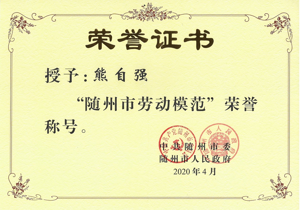 我公司總經(jīng)理熊自強(qiáng)被評(píng)為“隨州市勞動(dòng)模范和先進(jìn)工作者”