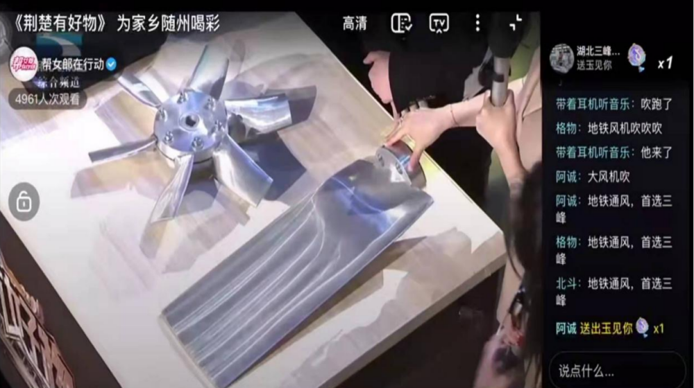 2021年12月17日,我公司在隨州市、廣水市兩級政府的帶領下,參加湖北省電視臺《荊楚有好物》直播帶貨活動,銷售總部部長李永卓代表公司進行直播帶貨。此次活動現(xiàn)場,我公司李永卓部長對公司整體情況進行了介紹,并現(xiàn)場展示了地鐵隧道軸流風機核心部件。該產(chǎn)品主要應用于地鐵、隧道、機場等大型工程,其整體技術達國際先進水平,目前已應用于武漢、成都、深圳、重慶、杭州等多個城市。您在武漢地鐵站吹過的風,大部分都來自“三峰”。