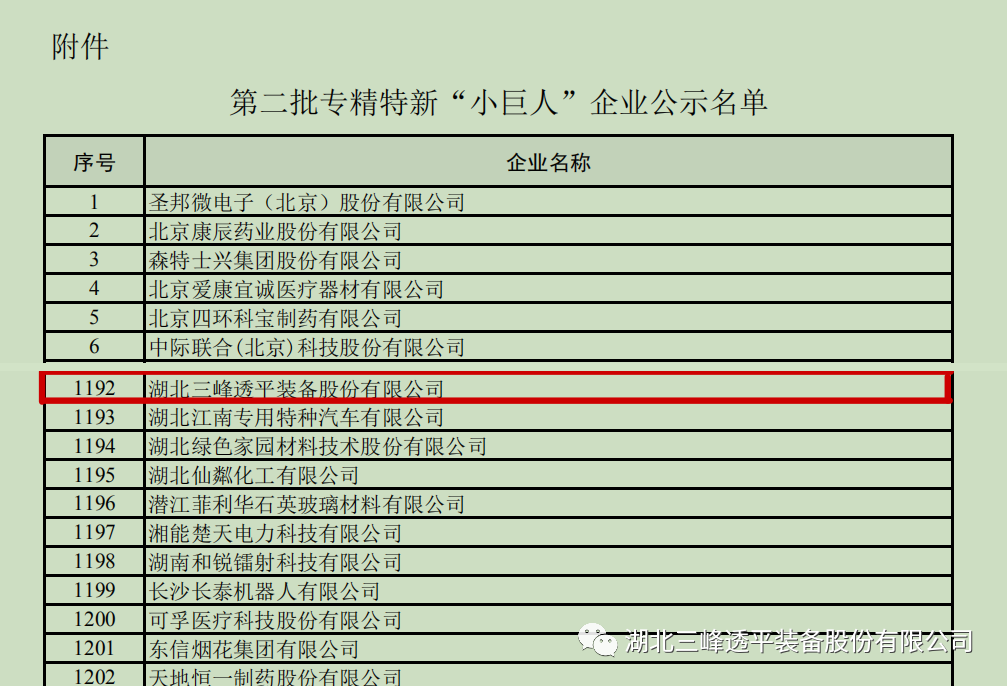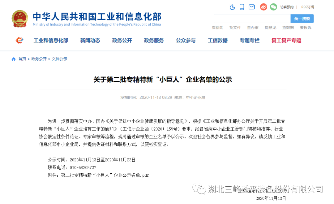 2020年7月,我公司根據(jù)《工業(yè)和信息化部辦公廳關于開展第二批專精特新“小巨人”企業(yè)培育工作的通知》(工信廳企業(yè)函〔2020〕159號)要求,申報了第二批專精特新“小巨人”企業(yè),經(jīng)過省級中小企業(yè)主管部門初核和推薦、行業(yè)協(xié)會限定性條件論證、專家審核、企業(yè)名單公示等流程,公司憑借顯著的創(chuàng)新、研發(fā)、生產(chǎn)能力獲得第二批專精特新“小巨人”企業(yè)稱號。