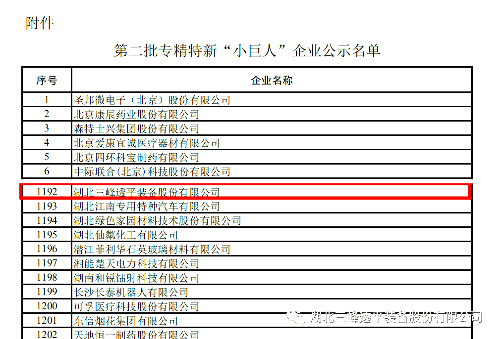 2020年7月,我公司根據(jù)《工業(yè)和信息化部辦公廳關(guān)于開展第二批專精特新“小巨人”企業(yè)培育工作的通知》(工信廳企業(yè)函〔2020〕159號)要求,申報了第二批專精特新“小巨人”企業(yè),經(jīng)過省級中小企業(yè)主管部門初核和推薦、行業(yè)協(xié)會限定性條件論證、專家審核、企業(yè)名單公示等流程,公司憑借顯著的創(chuàng)新、研發(fā)、生產(chǎn)能力獲得第二批專精特新“小巨人”企業(yè)稱號。